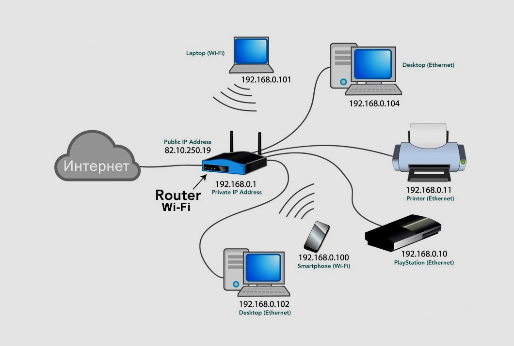 - Во всех случаях интернет приходит в роутер, который распределяет соединение по дому — через Wi-Fi и сетевые кабели.